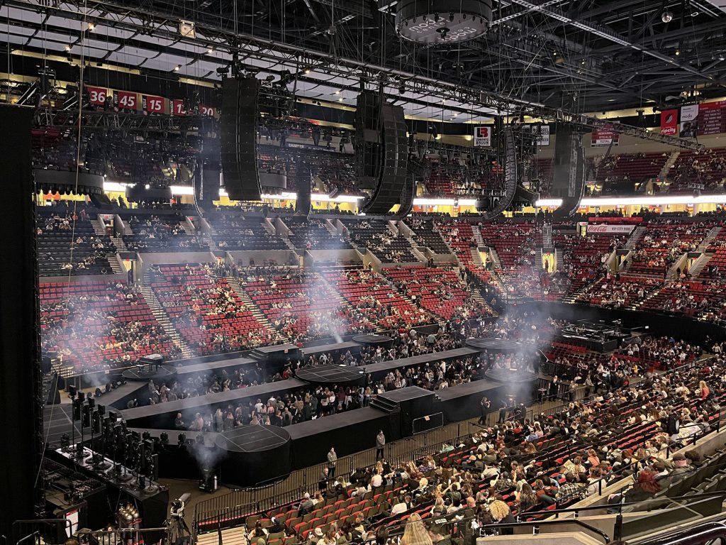 PRG deploys nearly 200 K Series loudspeaker enclosures to accommodate the tour’s unique triple-thrust stage design