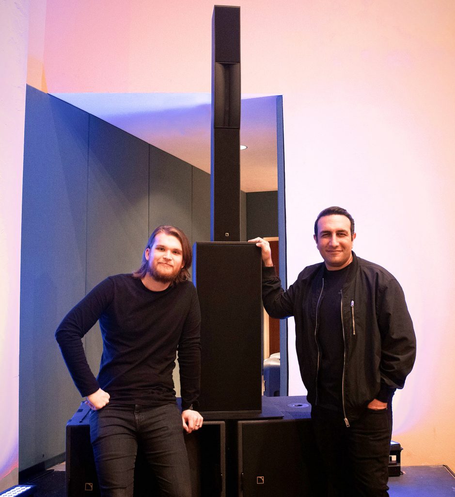 Christ Fellowship Audio Director Connor Newcomb (left) and Production Director Danny Dagher pictured with a Syva atop a Syva Low and two KS21