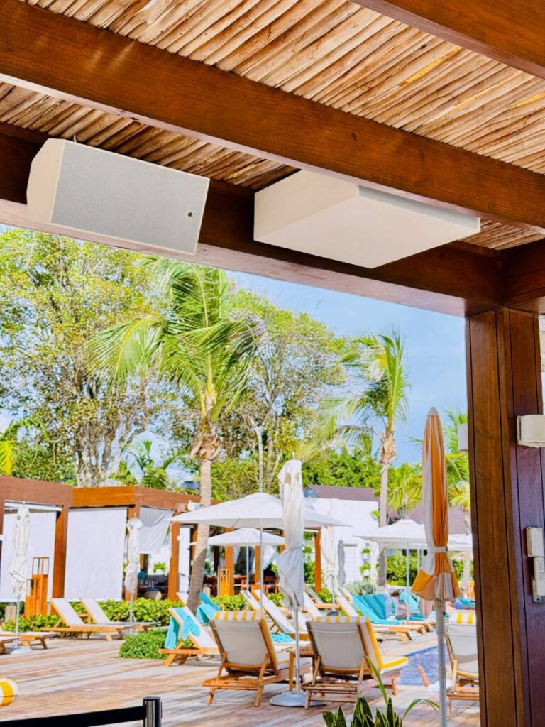 “Coverage and control were the central concerns in the cabana areas. The goal was to deliver a private, contained experience without bleeding into neighboring spaces,” Abreu continues. “You want the volume to feel right inside each cabana without causing bleed-through. That means consistent coverage and quality sound, even at low listening levels.”