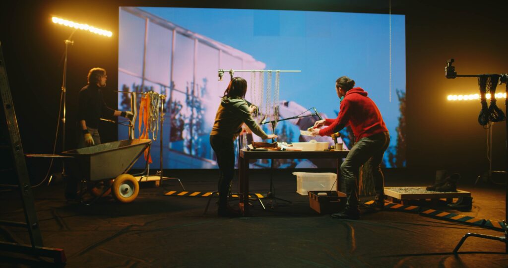 Foley artists work in specialized studios, surrounded by an eclectic mix of props: shoes of every kind, gravel pits, water tanks, metal sheets, and more. Their job is to watch a scene and recreate the sounds that would naturally occur—footsteps on different surfaces, the rustle of clothing, the clink of glass, or the subtle creak of a chair.